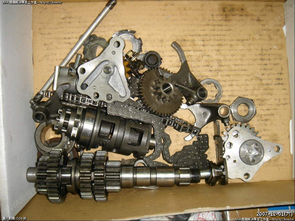 我大概知道前車主怎麼會騎到壞…應該是引擎組好,都沒總成換油,我看機油幫浦卡一堆沙子,沒救了,橡膠輪也變型了。 【第4張】 |
