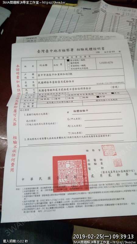 | 內容說明:2019.02.22爸爸過世 | 瀏覽人數: 1340 |