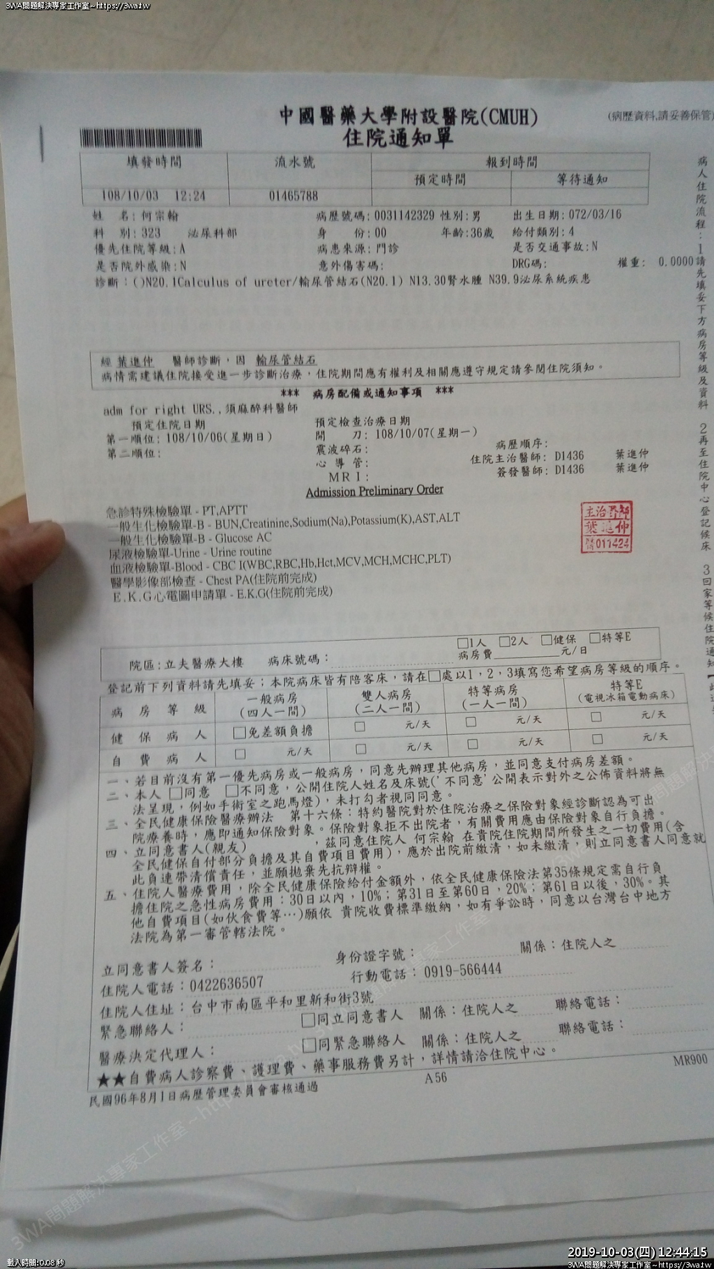 | 內容說明:2019.10.07腎結石開刀 | 瀏覽人數: 1291 |