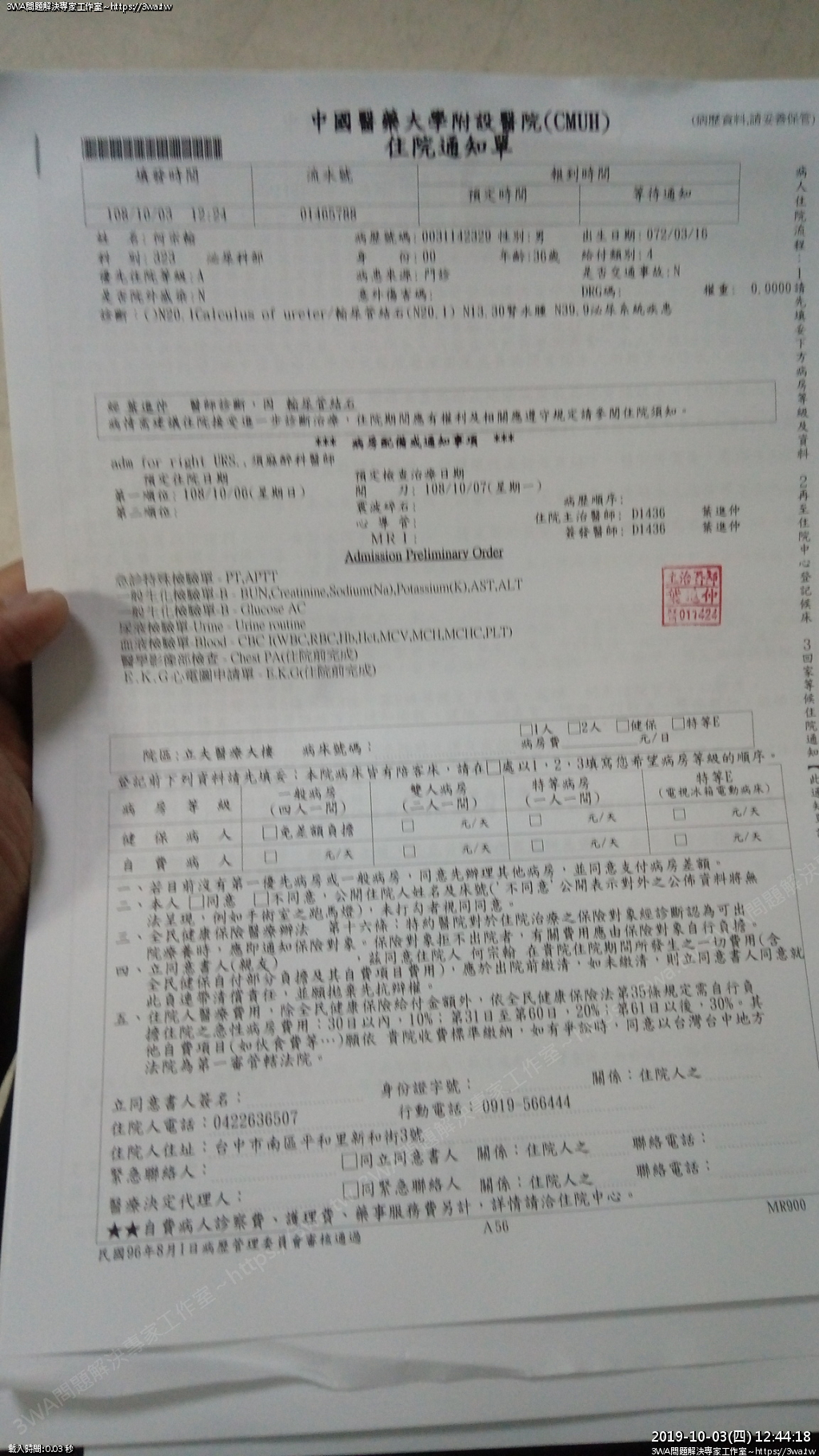 | 內容說明:2019.10.07腎結石開刀 | 瀏覽人數: 1268 |