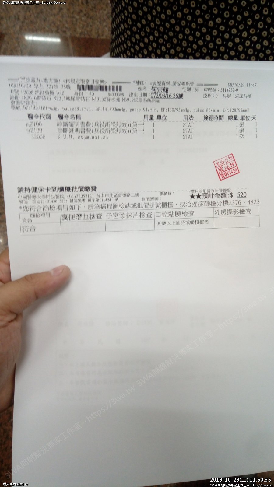 | 內容說明:2019.10.07腎結石開刀 | 瀏覽人數: 1528 |