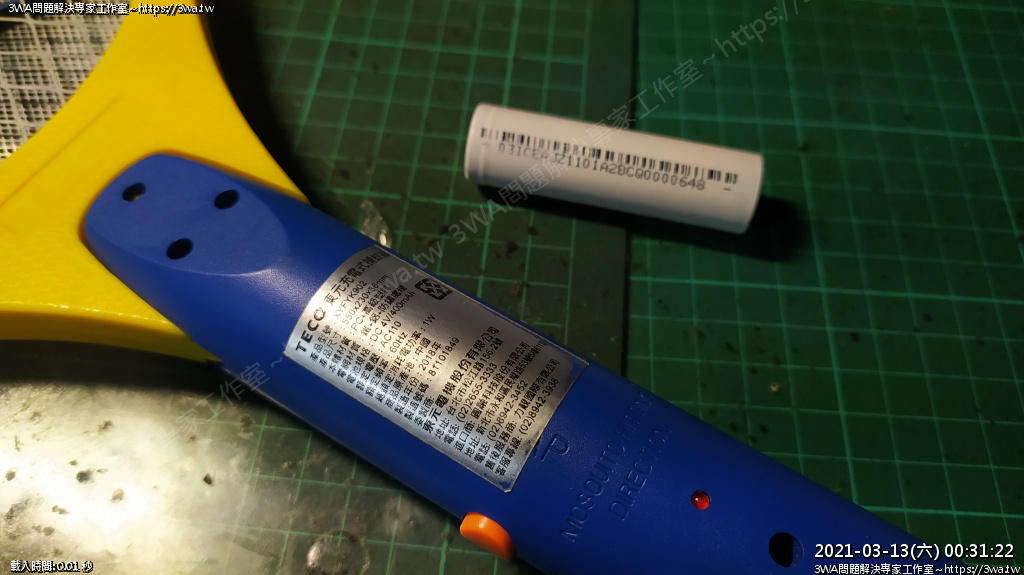 | 內容說明:2021.03.13電蚊拍更換鋰電池 | 瀏覽人數: 1224 |
