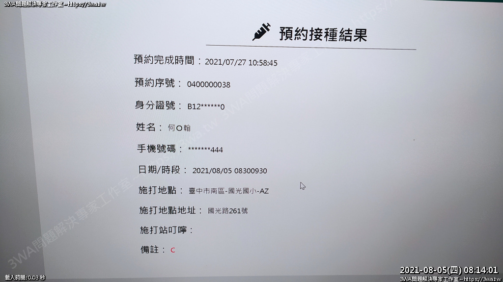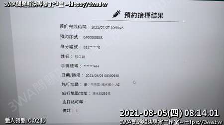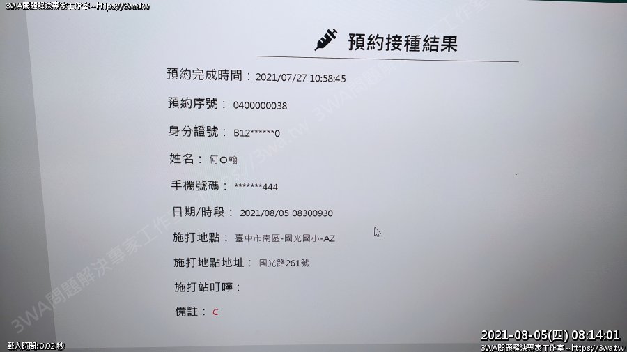 | 內容說明:2021.08.05打AZ疫苗 | 瀏覽人數: 1180 |