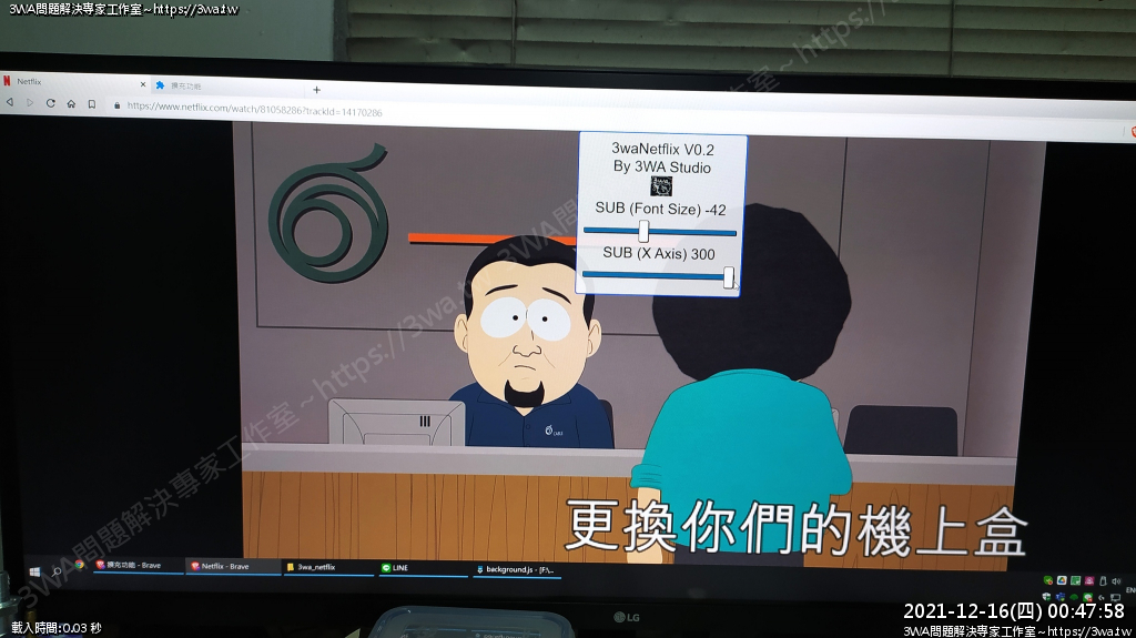 | 內容說明:2021.10.03netflix字幕加大 | 瀏覽人數: 1283 |