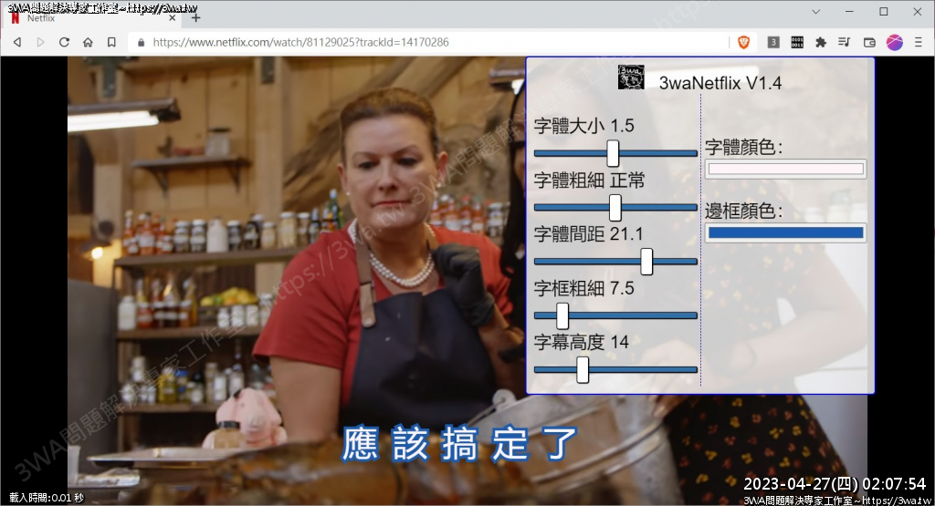 | 內容說明:2021.10.03netflix字幕加大 | 瀏覽人數: 1072 |