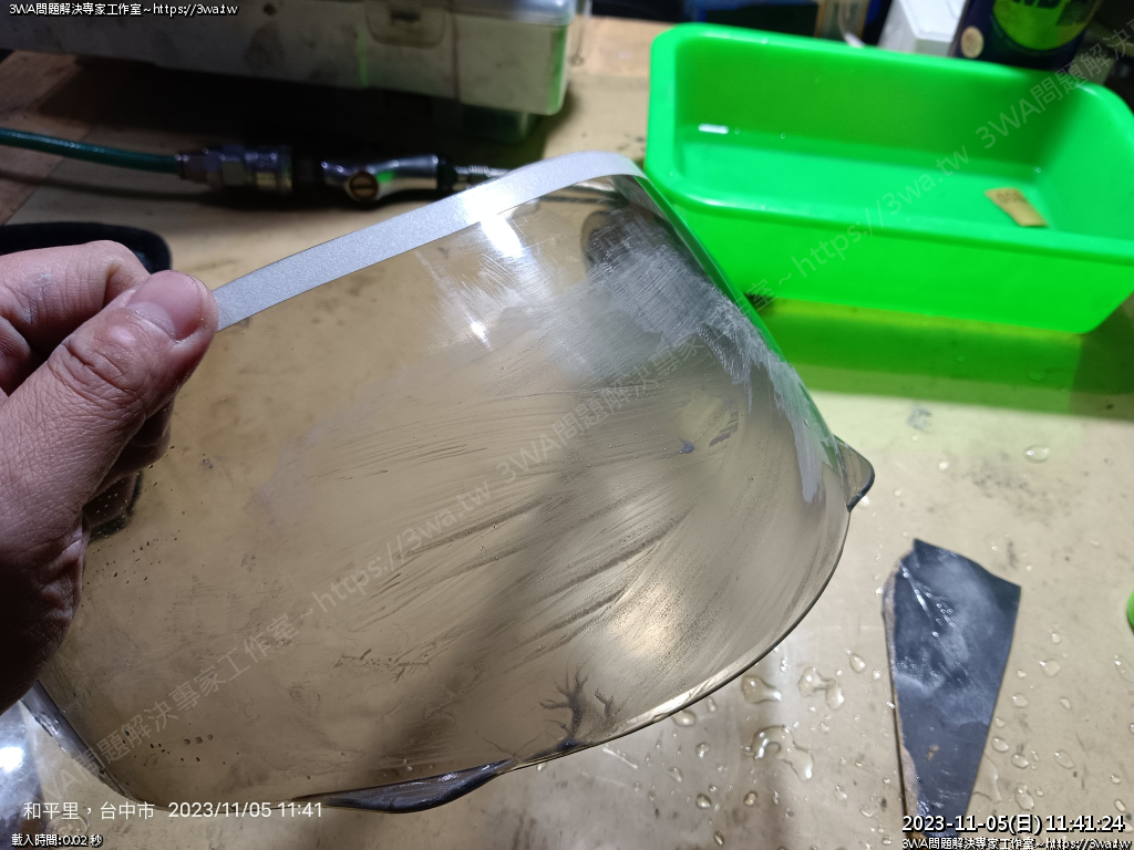 | 內容說明:2023.11.06拋安全帽鏡片 | 瀏覽人數: 749 |
