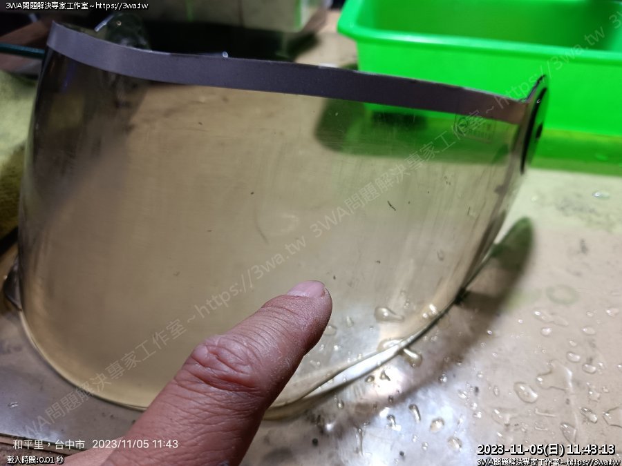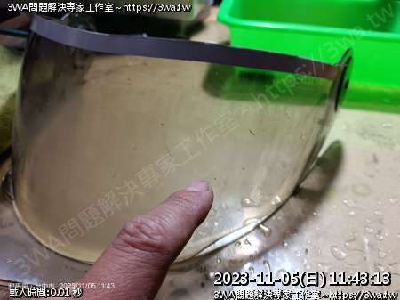 | 內容說明:2023.11.06拋安全帽鏡片 | 瀏覽人數: 841 |
