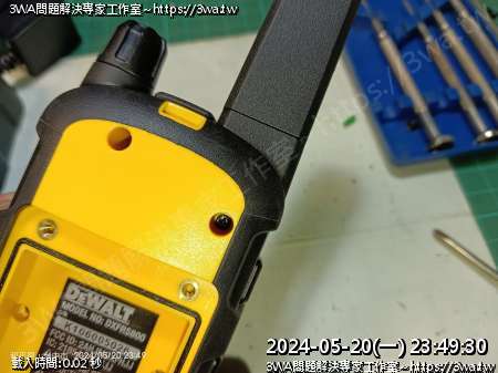 | 內容說明:2024.05.21維修Dewalt walkie talkie | 瀏覽人數: 769 |