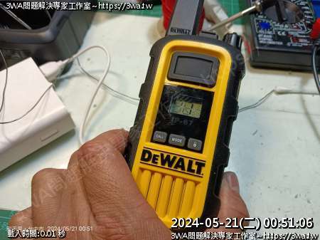 | 內容說明:2024.05.21維修Dewalt walkie talkie | 瀏覽人數: 758 |