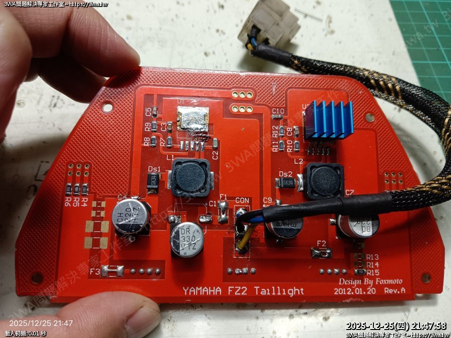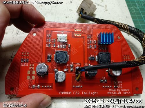 | 內容說明:2025.12.25FZ2 狐大LED尾燈維修 | 瀏覽人數: 16 |