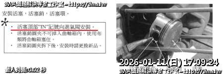 | 內容說明:2026.01.10VR150整理缸頭活塞 | 瀏覽人數: 17 |